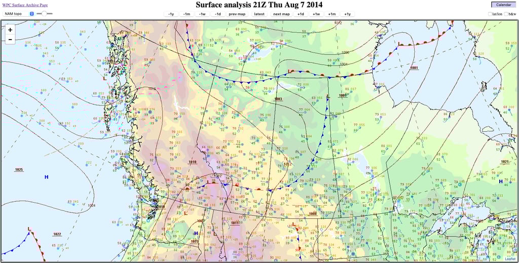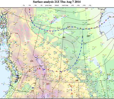 Figure 23: Surface analysis at 3PM MDT, 7 August 2014. Credit: NOAA.
