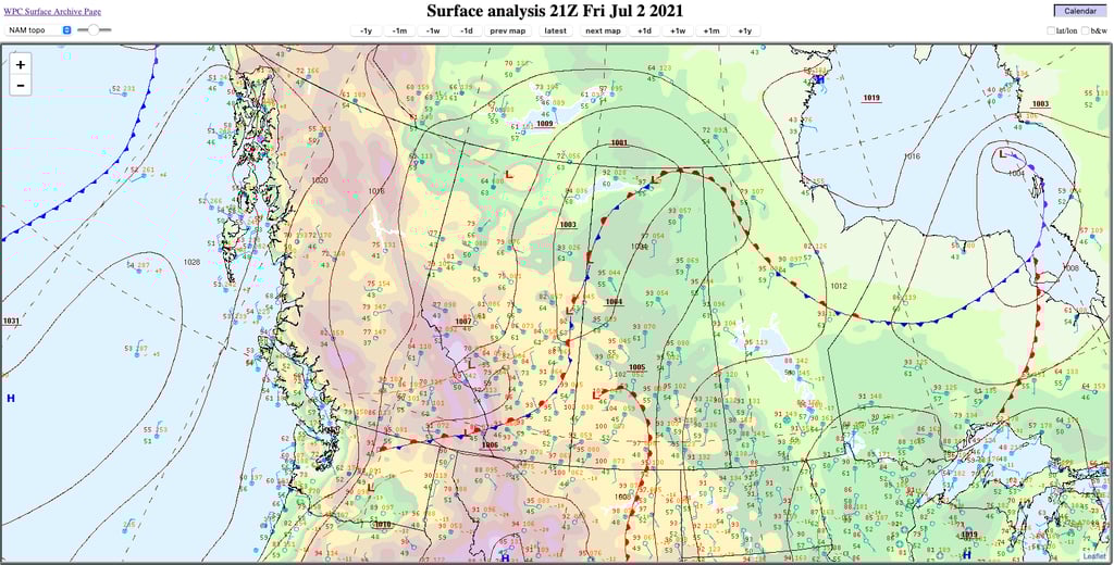 For all cases, surface observations were retrieved from NOAA's WPC. For all cases after 1991, 500mb analyses are retrieved from the SPC's mesoanalysis archive, due to its higher spatial and temporal resolution, despite Calgary being near the edge of the map domain. Additional 500mb analyses are linked, showing the broader upper air picture based on the 12Z observations of the storm day. Reanalysis soundings for all cases after 1991 are from SounderPy: 12 July 2010 uses RUC data, while the remaining five use RAP.