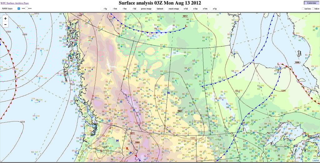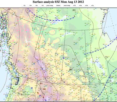 Figure 20: Surface analysis at 9PM MDT, 12 August 2012. Credit: NOAA.