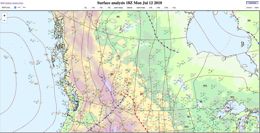 Figure 17: Surface analysis at 12PM MDT, 12 July 2010. Credit: NOAA.