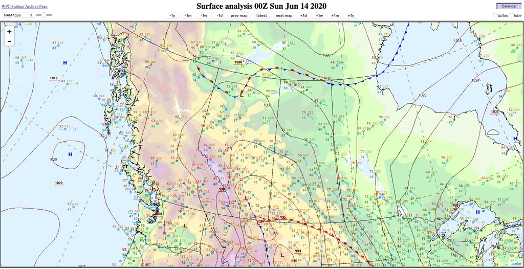 Figure 26: Surface analysis at 6PM 13 June 2020. Credit: NOAA.