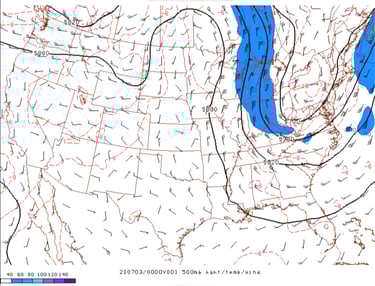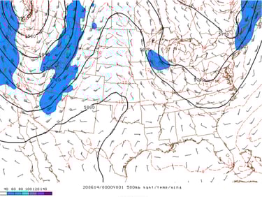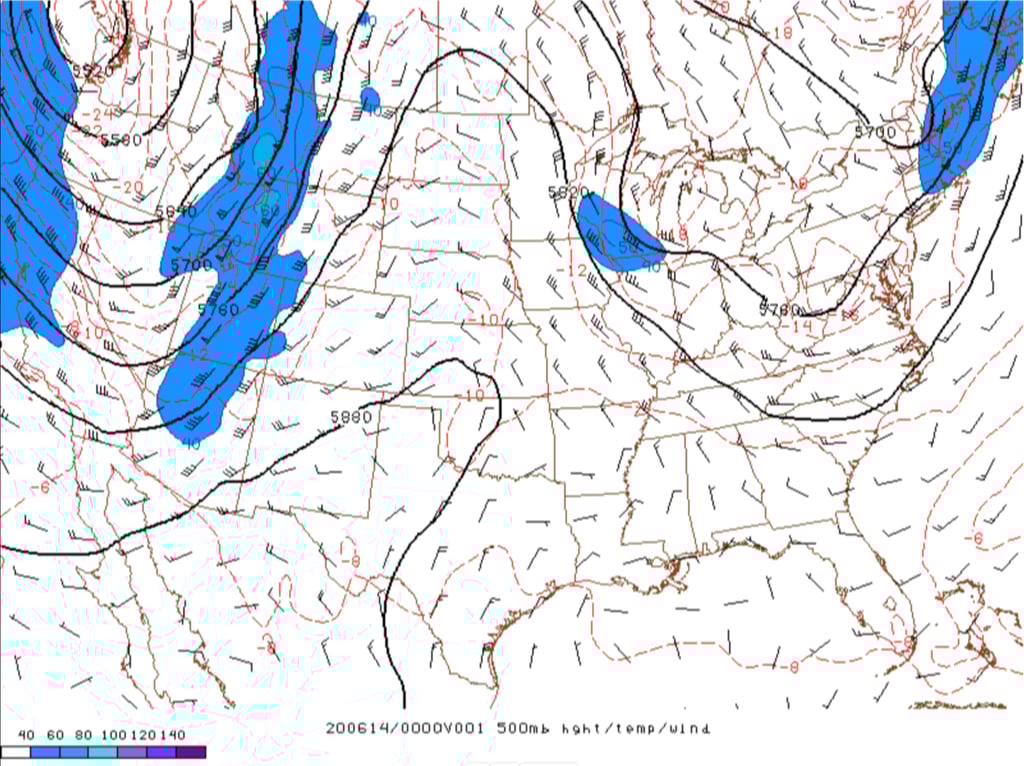 Figure 25: RAP 500mb height and wind analysis at 6PM MDT, 13 June 2020. Credit: NOAA/SPC.