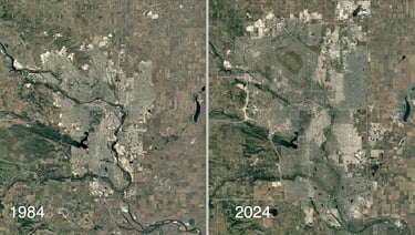 Figure 3: Satellite imagery of Calgary in 1984 and 2024.