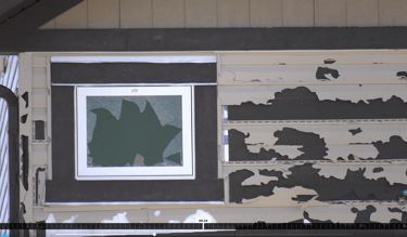 Figure 1: Severe damage to the exterior of a home in northeast Calgary following the $1.3B 13 June 2020 hail event. Windows were shattered and vinyl siding shredded on exposed aspects of countless homes.