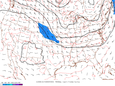 Figure 19: RAP 500mb height and wind analysis at 9PM MDT, 12 August 2012. Credit: NOAA/SPC.